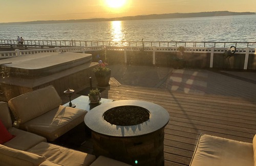 Waterfront house on the Redondo Beach Boardwalk. Large groups will rest easy at this 7 bedroom luxury home. This gem is located in one of Seattle’s most charming and desirable neighborhoods. Walk along the quaint, waterfront boardwalk. Afterwards, enjoy dinner or a glass of wine on the beautiful fenced-in outdoor elevated patio watching the boats sail by in Puget Sound or a soak in the warm spa.