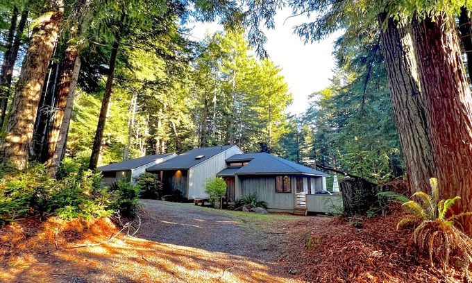 Redwood retreat with large deck, grill, AC, & art collection - dog-friendly | House in Crescent City