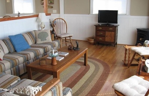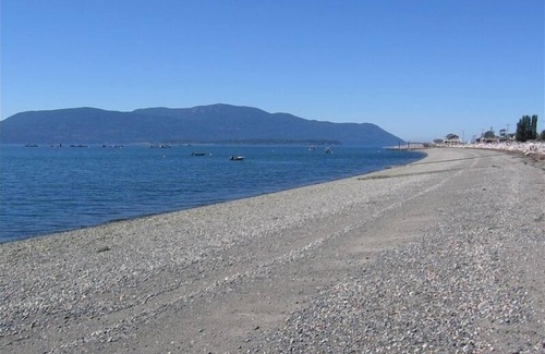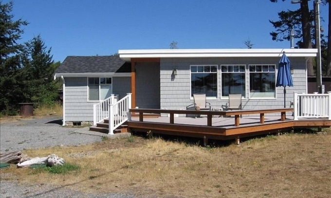 There are 2 bedrooms and 2 baths. One of the bedrooms has a King bed and the other either 2 twins or they can be converted to a Queen size bed. The living room has a Queen size sleeper sofa, a propane fire place and DVD. The kitchen is new and fully equipped. There is a large deck on the front where you can take advantage of the views also plenty of outdoor seating, tables and BBQ. There is a good size lawn area for croquet, bocce ball and the like. The beach across the street is filled with driftwood, agates and shells. If you have a boat you can crab in season. Bring along your kayak or I can arrange for a company to take you out. We also have bikes. All in all a perfect vacation spot.