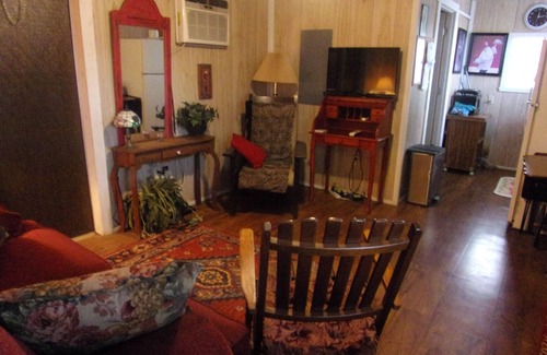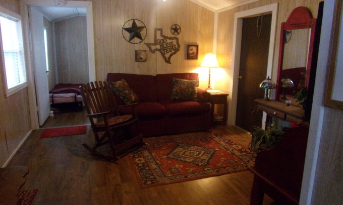 This extremely clean cabin has 1 bedroom, 1 large bath, living room, kitchenette, covered front porch, wifi, satellite TV, heat and air, sits back from water but on WF property w/golf cart available to travel 150' to boathouse on water, plenty of parking for boat, sleeps one or two adults maximum, no children, no pets, no smoking inside. Nothing needed but personal items, Right at Six Mile Bridge on Toledo Bend Lake. Boat launch in addition AND public one within walking distance. Restaurants, Family Dollar, Bank, gas within 3 miles. Quiet neighborhood just 500' off main Hwy 87. Owner lives on property and readily available. 10 miles to city of Hemphill. Six Mile Community! Great fishing.