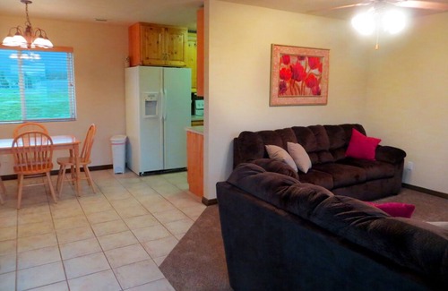 The property also has a separate building we call "The Roost". The Roost features an upstairs, 1 bedroom studio apartment with a full kitchen, living room, bathroom and washer/dryer. On the ground floor of "The Roost" is a separate bedroom that has a bunk bed with a double bed on the bottom and a single on top. The main floor of the Roost also as a Game Room with ping pong, air hockey and other games. Two shared bathrooms with showers are located on the main floor of the Roost for guests to use. The Roost is equipped with air conditioning and heating.