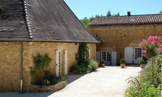 Strikingly stylish in an enviable and beautiful location, this property has been restored to a high standard. Large open plan living areas and well proportioned bedrooms give a real sense of light and space. This has been accentuated by the white washed walls and south facing rooms overlooking the terraces, gardens and heated pool. La Badoussie is a Perigordian stone house with attached converted barn providing 5 generous bedrooms all with en-suite bathrooms, 2 reception rooms and a modern well-equipped kitchen. There's a lot of space for children too: in addition to the pool they will love playing in the lawned gardens or exploring the wooded areas beyond. La Badoussie is set within the Perigord Noir, famed for its history, cuisine, châteaux and stunningly pretty villages. The house is 4km from the famous Perigordian village of Daglan, 10 km from the River Dordogne and 20km from the Renaissance town of Sarlat.