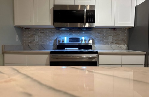 Our unit hosts a fully stocked kitchen with new stainless appliances, coffee maker and a full set of plates, glasses and utensils. An air mattress is available if needed. The separate wet bar features a new ice maker to ensure you have plenty of ice to enjoy your sunset cocktails on the deck.