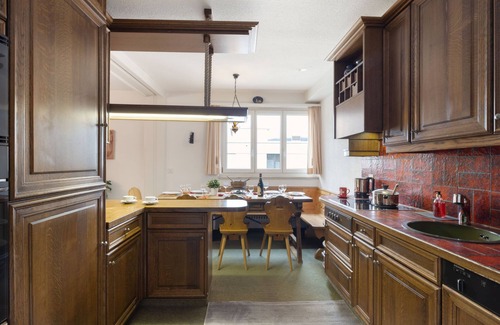 "Regina Apt Golfblick", 6-room apartment 160 m2 on 4th floor, south-east facing position. Spacious, simple and practical furnishings: living/dining room with open-hearth fireplace (only for decoration), cable TV (flat screen). Exit to the balcony, south-east facing position. 1 double bedroom 20 m2 with 1 double bed (2 x 90 cm, length 200 cm). 1 room 15 m2 with 1 french bed (1 x 140 cm, length 200 cm). 3 rooms, each room with 1 bed (90 cm, length 200 cm). Open kitchen (oven, dishwasher, 4 ceramic glass hob hotplates, toaster, kettle, microwave, electric coffee machine, Capsules for coffee machine (Nespresso) extra, fondue Set (chinoise, cheese)) with dining table. Bath/WC, shower/WC, sep. WC, double hand-basin. Carpet. Balcony 15 m2, south-east facing position. Balcony furniture. Panoramic view of the mountains and the town. Facilities: Internet (WiFi, free). Please note: suitable for families. Non-smokers only, no parking. Instead of an enclosed bedroom, some sleeping areas are located in an open-plan area (gallery, alcove, etc.).