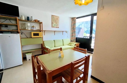Details: Near airport : Lyon Saint-Exupéry Airport #LYS (190.9 km), Marseille Provence Airport #MRS (178.8 km), Belle-Côte D'Azur Airport #NCE (138.9 km), Turin Airport #TRN (158.8 km), Geneva Cointrin International Airport #GVA (185.7 km) Surface (m²) : 26 View : Mountain and street Floor : 2 Exposure : North East Vacuum cleaner Ski locker Dishwasher Fridge Television Dishes and cutlery : 1 Animals not allowed Elevator Number of pieces : 2 Number of bathroom : 1 Number of bedrooms : 1 Number of single beds : 2 Number of double bed : 2 Raclette machine kettle Toaster Coffee maker Cooking plate Cooked : 1 Heating : 1 Number of stars