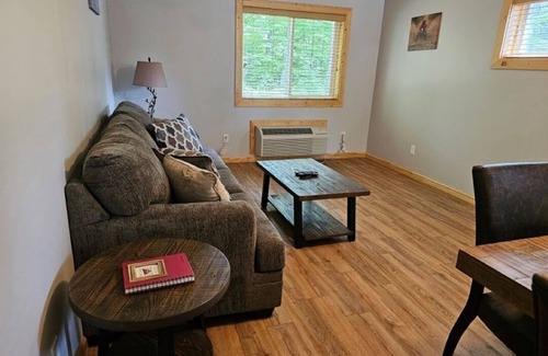 Living Room: Relax and unwind with comfortable seating, a sleeper sofa, and room for everyone to gather after a day of lakeside adventure.