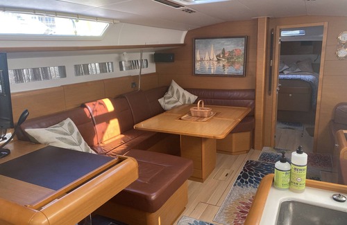 Beautiful 2016 52ft yacht. She provides comfort and style that you can expect from Jeanneau craftsmanship. Spacious interior cabins. Plenty of indoor or outdoor seating for you and your guest. Linens, toiletries, kitchen utensils, pots,pan, coffee maker, grill and much more are on this vessels for your use during your stay. You’ll be able to watch the sunset while sipping your cocktail on deck and wake up to see the manatees or dolphins that visit while enjoying your morning coffee.