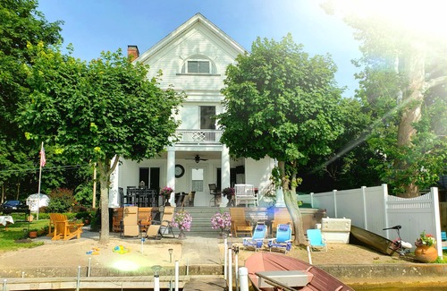 Charming home feel that sits on the shores of Conesus Lake. Plenty of space for kids and adults to play games like volleyball, bocce ball, can jam, fris bee, soccer, bad minton or just to relax. This 4 bedroom property has balconies for two bedrooms and huge windows that when all are open you sleep like you have never slept before. With it's large family gathering area, private bedrooms, hot tub and boat rental (23 ft Bennington Pontoon, 12 person- $400 for one day or $375/multiple days.) available, how can anything else be needed. So get your included firewood from store around the corner and enjoy a very relaxing rest away.