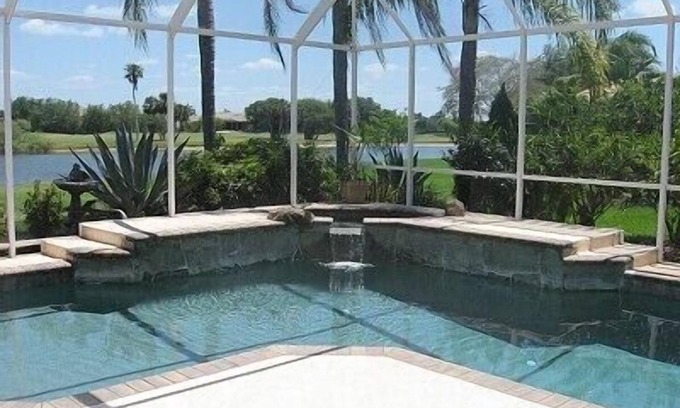 The home has over 2,800 square feet, with warm honey colored bamboo floors throughout the home. Two large separate living spaces with tall ceilings. The master bedroom has its own door that opens up to the pool area. One guest bedroom has a bay window with a cozy window seat. The second guest bedroom has a built in desk and built in drawers. The architecture around the pool is unique , (with golf course and lake views) and is surrounded by lush landscaping for privacy. Wildlife abounds with various birds and deer. If you choose to dine in, the kitchen offers all you need to prepare a great meal. It has cherry cabinets, granite countertops, double ovens and a large pantry to store all your favorites! Relax in the pool after a day of being on the water and at the beach. Some favorite places to go that I suggest are Myakka River State Park, Lido Beach, St. Armands Circle, Anna Maria Island, Selby Botanical Gardens, Jungle Gardens, Mote Marine Aquarium, The Ringling Museum of Art, Longboat Key, Busch Gardens, and the Big Cat Habitat. Sanibel and Captiva Islands are a short drive away as well. The golf course in the community is an 18 hole golf course and is open to the public.