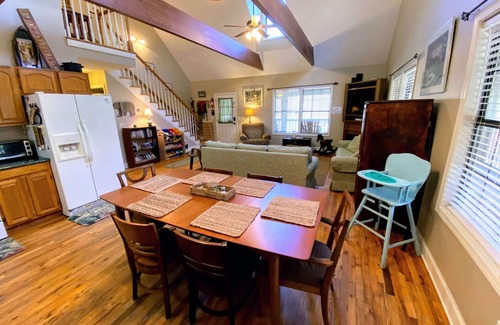 Enjoy relaxing to the sounds of the babbling creek while sipping wine in the hot tub or sitting around the fire pit! Just 10 minutes from the Bavarian Alps replica town of Helen, Georgia. Dog friendly & convenient to local wineries! Huge yard perfect for letting the kids explore.