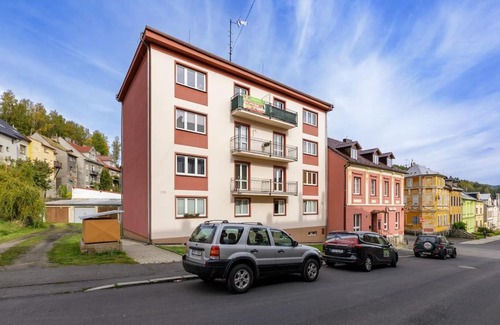 Set in Nejdek, 20 km from Mill Colonnade, Relax apartmán s finskou saunou offers accommodation with a garden, free WiFi and an ATM. Boasting a balcony, the apartment is in an area where guests can engage in activities such as hiking, skiing and cycling. This apartment is fitted with 1 bedroom, a kitchenette with a fridge and an oven, a flat-screen TV, a seating area and 1 bathroom fitted with a bath. Towels and bed linen are offered in the apartment. The apartment offers a sauna. A bicycle rental service is available at Relax apartmán s finskou saunou. Market Colonnade is 20 km from the accommodation, while Hot Spring is 20 km from the property. The nearest airport is Karlovy Vary International, 26 km from Relax apartmán s finskou saunou, and the property offers a paid airport shuttle service.