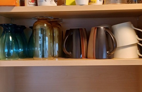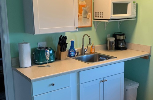 Living room has a 40" Smart TV and Wifi. The TV also picks up over 50 channels including some from DC and Richmond. Kitchenette includes basic kitchen utensils and food preparation appliances. We now have a Full size fridge/freezer in the Guesthaus. NO full STOVE/OVEN but does have a two-burner hot plate frequently used by guests. Outdoor grill and chiminea on private patio. Two decks provide seating to enjoy the beautiful views. Spacious fire circle with ample free firewood.