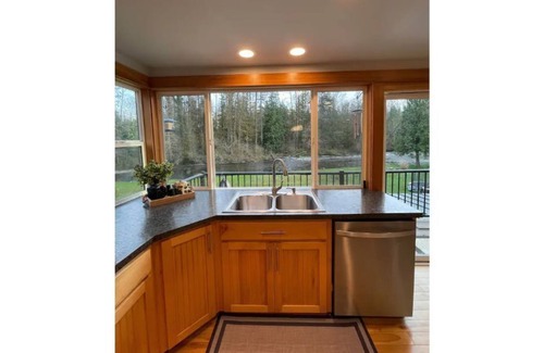 Whether you're here to unwind on the couch next to the fireplace, sit and enjoy the river views, or explore the many hikes and adventures in The Pacific Northwest, we got you covered. You will be sure to enjoy your experience at "The Riverside Getaway"