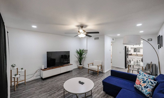 Experience the epitome of contemporary living in the vibrant heart of Old Town Scottsdale. Our 2BR condo, nestled within a serene complex, offers a blend of style and comfort just moments away from top attractions like the Phoenix Zoo and Papago Park's picturesque golf course and hiking trails. Unwind in the tranquil pool area or venture into the lively neighborhood, where you'll find eclectic shops, waterfront dining along the Arizona Canal, and a bustling nightlife, all within a short 6-minute drive. This is modern living at its finest, where every moment is filled with excitement and relaxation.