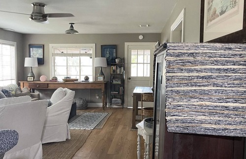 This quaint cottage, located on a tidal creek has a screened in front porch with places to sit and enjoy the water, birds and all that nature offers. Oaks create shade and ambience. A grill allows you to cook and watch the water as well as eat outdoors under the stars. Comfy beds and a fully stocked kitchen make this cottage away from home enjoyable. It is rural Edisto.