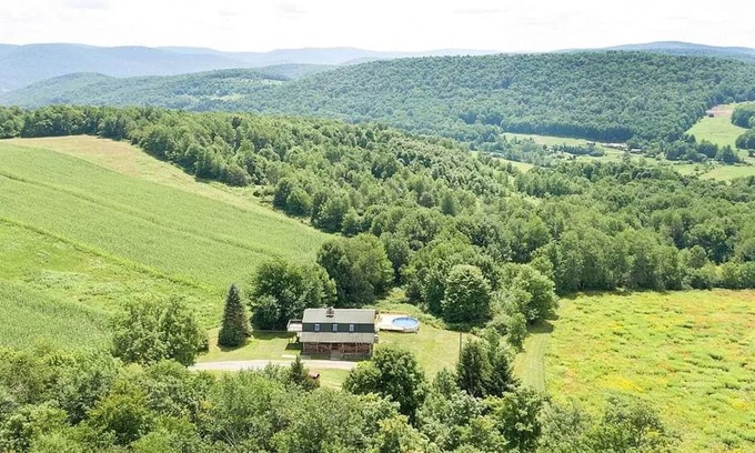 Beautifully nestled at the borders of the Catskills this true two-story log cabin home has ample living & entertainment space: 4 bedrooms, 2.5 baths, beam ceilings, game room, a fully equipped kitchen, washer & dryer. An above-ground summer pool and amazing views from all of its 4 decks. Come and enjoy the quiet and tranquil healing energy of this house.
