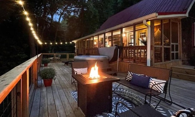 Come enjoy your morning coffee in your choice of settings - front porch with a woodsy view and porch swing, shady rear screened in porch or sunny outside rear deck both with a spectacular view of the river! Sun bathe on the comfy lounge chairs and dine on your freshly grilled meats you just cooked on the provided gas grill. At night enjoy some quality bonding time with your friends or family around the firepit after a dip in the hot tub. Firewood provided!