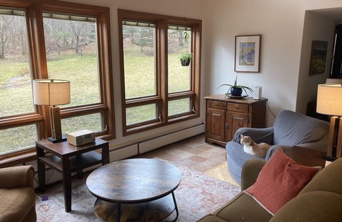 Experience total relaxation at this beautiful mountain retreat! Only 30 minutes from the Burlington airport and 15 minutes from Mt. Mansfield and Smuggler’s Notch Ski Resort. Chill on our huge deck while enjoying our fire circle. Hike on 10 acres of marked trails. Inside, enjoy a large common room flooded with light, a modern, open kitchen, and a cozy TV room. With 4 bedrooms, 3 baths and lots of parking, you'll have plenty of room for everyone!