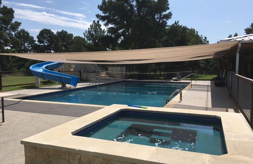 Yes, this Bastrop cabin has a swimming pool. Check the Facility Overview section for details about the pool and other available facilities.