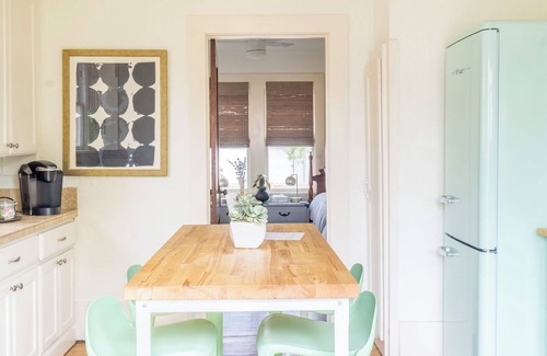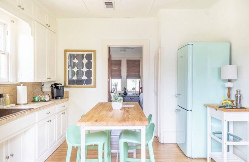 Enjoy a cozy experience at this centrally-located 1930 Bungalow. Our vintage home is small but mighty, with modern amenities, wonderful light quality, and comfortable decor. Sip coffee on the porch swing or cook-out in the back yard under a shady oak tree. Located just off the Town Square - you can walk to dining, shopping, coffee shops, and local museums. Convenient to all that Fayette County has to offer, including Round Top, the Painted Churches of Texas, Fayette Wine Trail, and more.