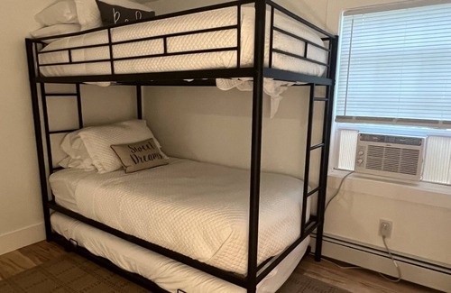 Inside, be treated to a newly renovated home which includes an open living space, fully equipped kitchen, on-site laundry, television, and 2BR. BR1 includes a queen size bed and BR2 includes 1 bunk bed with a trundle and 1 twin bed - bedding, linens, and toilet paper are included. Off street private parking is available.