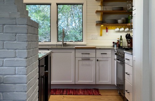 Large, bright kitchen is fully stocked for big breakfasts and evening meals. Huge center island with stools, 36” dual-fuel Bertazzoni range, two sinks and super-quiet Bosch dishwasher. Includes toaster, Ninja blender, hand mixer, electric kettle, cookware, coffee pot, built-in microwave.