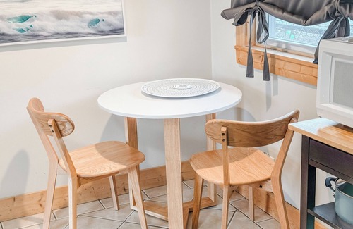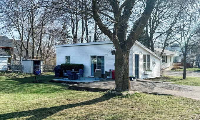 Relax and re-coop at The Coop Cottage! This bright in-town cottage is nestled on a large corner lot & a 5 minute walk to downtown Charlevoix. Non-shedding Pet Friendly with an unbeatable location. The coop cottage has one bedroom with a queen bed, blackout curtains and an en-suite bathroom. There is a corner off of the sofa room with comfortable, but small bunk beds. The bunks are 6ft long. The space ideal for a couple or a family with small children. Adults have slept in the bunks comfortably, but please make sure you take note of the bunks being 6ft before booking.