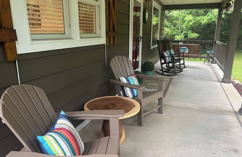 The front porch, complete with Adirondack and rocking chairs as well as a swing, is the perfect spot to watch the sunrise or indulge in some bird watching. Enjoy evenings gathered around the fire pit, making memories with family and friends. With its peaceful surroundings and safe atmosphere, this property is an ideal choice for those looking to unwind and recharge in nature.