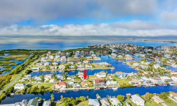 Water Views and direct access to the Gulf of Mexico This vacation rental includes a dock. Boasting 3 bedrooms, 2 bathrooms, and space for 6, this home is perfect for family or friends to come together. Features include a fully equipped kitchen and almost 1900 square-foot interior, promise a comfortable stay, while the electric awning covered patio exudes relaxation, so you can melt into your 'Sunshine State' retreat with ease. Don't hesitate! Plan your trip now.
