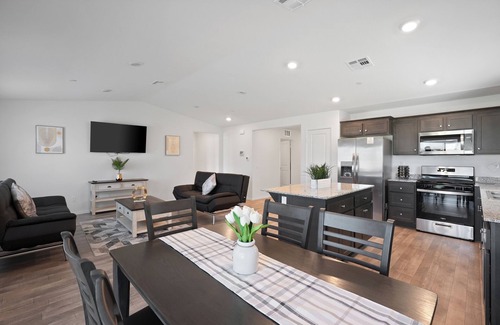wifi, Netflix, Smart TV in all rooms. House is equipped with queen bed in first room, 2 twin beds in second room, King bed in master room, a spacious master bathroom and 2 sofa beds in living room.