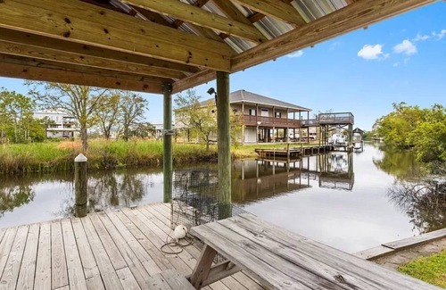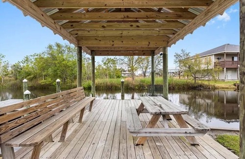 Hop on your boat tied up to the private dock outside of our 3 bedroom, 2 bath waterfront home and a few minutes later you're on the Jourdan River, and a few minutes after that you are in the Bay headed to the Gulf of Mexico! Bring your fishing poles, your bikes, or just a book to relax on the covered pier by the water. Or if you want to get out and about, downtown Bay St. Louis has plenty of restaurants and bars right on the water!