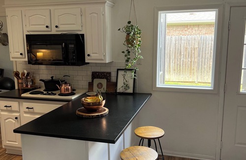 Unwind in Bryan at this charming house. With 3 cozy bedrooms including a king, queen, and full bed, guests will feel right at home. The property also features a comfortable living room with a sofa bed for additional space. Enjoy modern amenities like a washing machine, heating, AC, and 1 gig WiFi. Kickback, relax, and enjoy everything Aggieland and our brilliant house has to offer! Security cameras monitoring the front of the property are utilized for everyone's safety. If bringing pets, please include that in the booking to ensure your deposit can be fully returned.