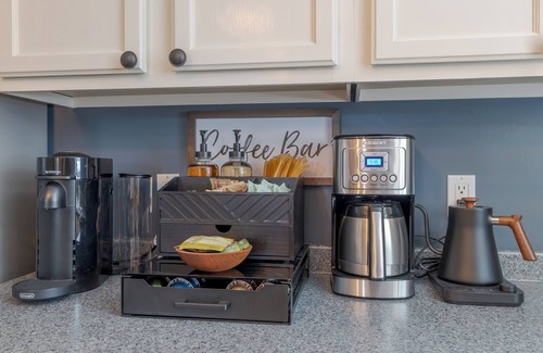 Whip up meals in a stylish, stainless steel kitchen fully stocked w/ cookware, spices & gadgets. The coffee bar includes French press, Nespresso & a variety of teas. Dine at the large table or grab quick bites at the island—perfect for fueling up before a day of adventure.