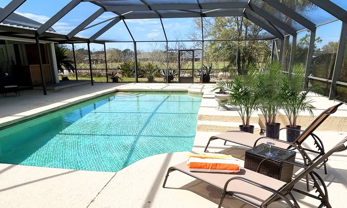 Private Screened-In Pool: Relax in our sparkling pool, complete with a kid-friendly shallow area—perfect for families.