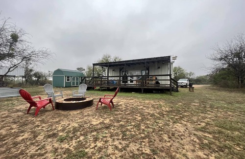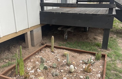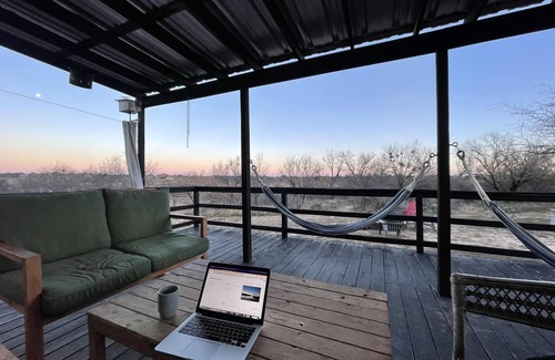 A cactus garden will greet you with a well lit front porch. Each bedroom has its very own bathroom. One bedroom features a super comfy king size bed with a bunk bed while the other has a queen size bed that's just as comfy. In the hallway, you'll find a washer and dryer with laundry soap. The kitchen comes equipped with a standard ground coffee maker, small microwave, oven and toaster along with plenty of plates, cups and mugs for a nice dinner at the table. In the living area, there is a nice leather couch and cute little chairs, but we expect you will spend most of your time on the spacious porch with two hammocks along with outdoor sitting. Enjoy the fire pit at night while staring in awe at the phenomenal stars. Don't forget firewood! The river is just a 300 ft walk downhill on a cleared trail behind the home. Scott's crossing is just a short walk out the front door and for deeper waters, you can drive up one crossing to Scheider's slab where locals enjoy a cool dip in the river. We have 3 kayaks & a kayak tote for your use.