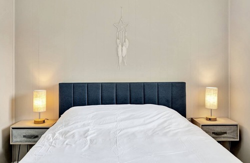 This cozy house has 3 bedrooms that are all of a comfortable size and can comfortably sleep up to 8 people. You'll have plenty of storage space and extra pillows and blankets with high-end linens to ensure your comfort during your stay. Each bedroom has its own unique touch that creates a warm and inviting atmosphere, making you feel right at home.