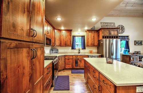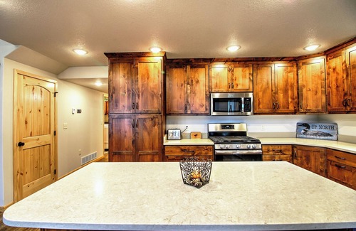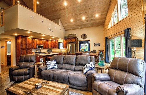 Trade in the hustle and bustle of the city for a peaceful lakefront getaway when you stay at this luxurious 3 bedroom, 2.5 bathroom vacation rental. This Park Rapids cabin features an upscale interior with large floor-to-ceiling windows facing the lake, a fully equipped high-end kitchen, and a furnished loft with a desk workspace overlooking the lake. Take your boat out for a spin on Fish Hook Lake or simply cast a line off the private on-site dock. End the day by grabbing a bite in town or kicking back on the spacious deck.
