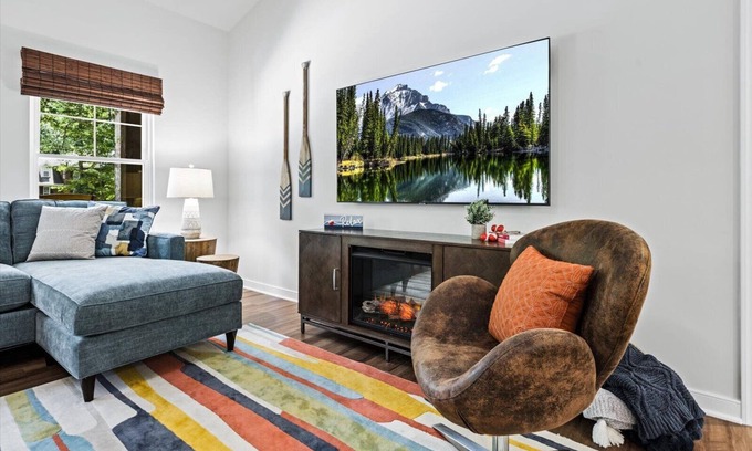 Each bedroom features memory foam mattresses, wood woven roman shades, coastal decor, recessed lighting, and additional ambient lighting for a restful night’s sleep. The main bedroom has a King bed, a large walk-in closet, an overhead fan, an electric fireplace, a flat screen TV, two oversized chairs, perfect for reading during the morning light or working remotely with the laptop, and a private bathroom with a luxurious, free-standing bathtub, double sinks, and a large, sit-in shower with a rain shower head, and a separate toilet room.