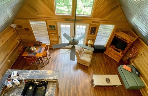 Neighborhood: One of six cabins and RV sites on a relaxing wooded property. Less than 10 minutes from town and about 5 minutes to the public beach area. Tim's Ford State Park is a 14-minute drive. Close to everything, yet still feels secluded and peaceful.