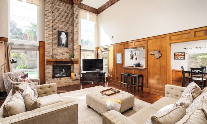 Best-rates for the Houston house starts from $282 per night with includes Child Friendly, Air Conditioner, TV, Sports/Activities, Parking, Private Pool, Bedding/Linens, Barbecue/Outdoor Cooking, Internet, Laundry, Pool, Security/Safety, Kitchen, Wellness Facilities, Fireplace/Heating StayAndPlay offers fully equipped golf villas, golf hotels, golf resorts, luxury golf cabins, and exclusive golf retreats, making it easier than ever to find your perfect golf escape — ideal for families, peaceful getaways, or pet-friendly retreats with the whole crew.