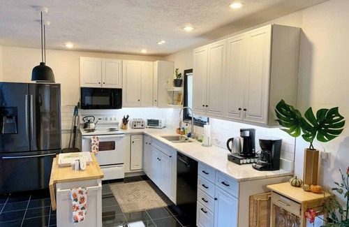 This cozy 3 bedroom, 2 bath chalet in heart of the Poconos offers everything you need for a comfortable stay. Plenty of space to move, stay, play, and relax. Warm yourselves by the pellet stove on cold days. Cook gourmet meals in an extra large kitchen that is fully stockefd or work at our dedicated work station. Converse outside while you watch the deer go by or make S'mores on the fire pit. Ample parking for the whole family. Property is in a community with plenty of amenities (paid seperately). We just installed a brand new hot tub for relaxing after a day on the slopes! Just minutes to Camelback & Kalahari! Pet friendly w/fee.
