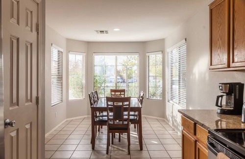 This listing is for the entire home including the backyard with pool (HEATING OPTIONAL) and patio area. The home is 1600 square feet with vaulted ceilings. All the essentials are provided such as sheets, blankets, towels, bath and shower toiletries and laundry supplies for your entire group. There is off-street parking available for up to 4 cars (2 garaged). There are no trailer, camper or RV parking accommodations available. Private office space in the Master bedroom.