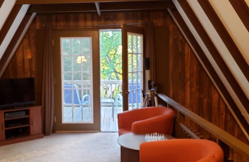 A-frame cabin with sleeping loft for up to four people.