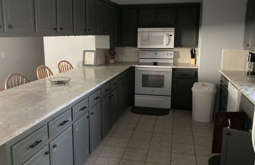 Easy access to the boat ramp, water, and beach all while having the comforts of your own home. If you don't want to get on the water we have TV, cornhole, and other indoor games. Big yard with patio and fire pit to enjoy hotdogs and smores!!