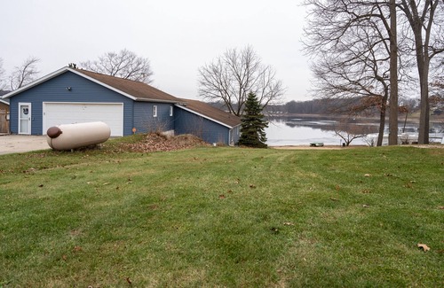 Beautiful view of water. Lake sparkles from moonlight and stars at night. Relax and watch a movie in the jacuzzi tub. Shoot pool, play arcade games or just watch a movie on the Big screen. Cuddle up next to the cozy fireplace and relax, read a good book or just listen to music. Or gather the family on a rainy for board games. The property has two floors with thier own outside entrances. The property is located inside seasonal campground with houses and campers. Please do not use campground facilities. Property has well and septic tank. sometimes the water has a slight iron smell, bottle water is recommended. Property has professional pest control but is located in a rural area so it is possible to see an occasional field mouse.