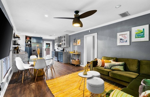 Welcome to the Hummingbird House where the joy of Lake Austin is in your backyard. If you are looking to get out on the water or explore Austin, our furnished bungalow provides everything you need for a relaxing stay. The property consists of a main home and a detached guest house. Outside, there's a zen garden with hanging chairs, a hammock, a dining table, and a fire pit. Walk out the gate in the backyard to a secluded, public park on the banks of the pristine, constant level, Lake Austin.