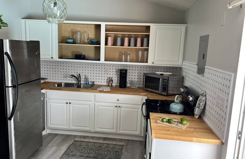 Take it easy at this unique and tranquil getaway. Sit poolside in the beautifully remodeled Studio Villa. This private studio boast a full kitchen, queen bed and brand new pullout couch. Full of light and space. Relax in the peaceful lanai surrounded by butterflies, dragonflies, a citrus tree. So many things to do . . . .White beaches, NAS, and Big Lagoon just minutes away. Watch the Blue Angles take flight or relax and read a book . . fun for all.