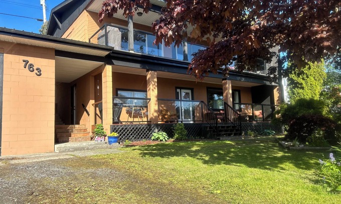Relax in this spacious, ocean-themed 3-bedroom, 2-bath upper-level suite in peaceful Port Edward. Just a short walk to the water, enjoy coastal charm, a fully equipped kitchen, cozy living space, laundry amenities and private entrance. Watch the boats roll into port from your covered patio equipped with a bbq or relax around the propane fire pit located in the flower garden. Perfect for families, couples, or groups looking for a quiet retreat near Prince Rupert. Breathe in the sea air and unwind in this comfortable coastal getaway.