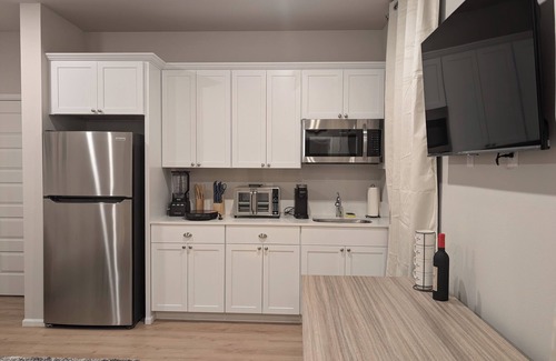✔ Fully Equipped Kitchenette – Cook your favorite meals with a stove, microwave, refrigerator, toaster, coffee maker, and essential cooking utensils. We also provide pots, pans, dishes, silverware, and basic spices to make your stay easier.