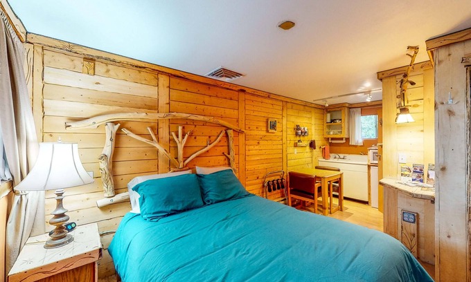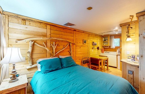 Inside Cabin 3, the local wood finishes and homey fixtures turn this studio into a cozy hideaway. Small but mighty, this cabin features plenty of storage space - so bring your adventure gear!